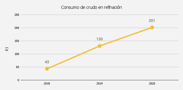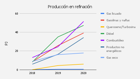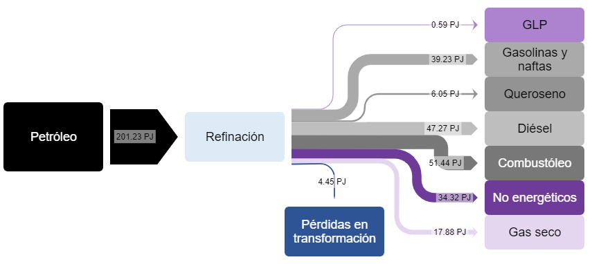 Diagrama de sankey de los productos de refinación en Madero 2020.